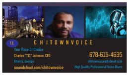 I have Many Voices. From the Smoothest Bass to The Highest in Good Taste with Oriental, Hispanic, Middle Eastern, Northern and Southern American Accents, Elderly, Kid, Cartoon, Presidents, Soul and a ton of Character voices. Too Many too mention. Yes, Your Voice of Choice, CHITOWNVOICE. I invent NEW Voices to suit your special needs if it's Unique you Seek. I can write the copy, execute the voice. Finalize it for whatever Media You choose or deliver the news. It`s what I do "T.C", that's ME!